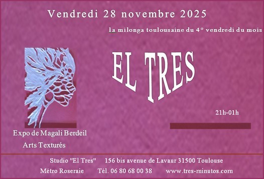 Tres Minutos organise toute l'année cours, milongas, stages, ateliers, des concerts? des conférences dans sa propre salle, le Studio El Tres.
